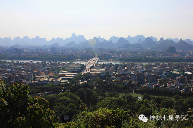 桂林七星山由普陀山的天枢、天璇、天玑、天权四峰与月牙山之玉衡、开阳、瑶光三峰组成,七星岩横穿普陀山,峰顶的摘星亭,可尽赏桂林的山——水——城市交融之美。于是小编就将普陀山作为这次游山的起点。