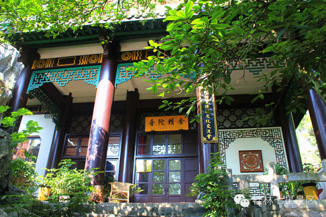 抬头仰望,“普陀精舍”四字飞入眼帘,白墙,青瓦,飞檐,楼阁,立于山腰之中,散发着静谧的禅意。普陀精舍所处之地,原为普陀寺旧址,普陀寺始建于唐代,佛教文化为唐最兴盛,因此自古七星便是桂林佛文化的荟萃之地。遥想当年,僧人盘坐阁楼中,吃斋念佛,静心清修,放眼可眺山林美景,真让我等羡慕啊。