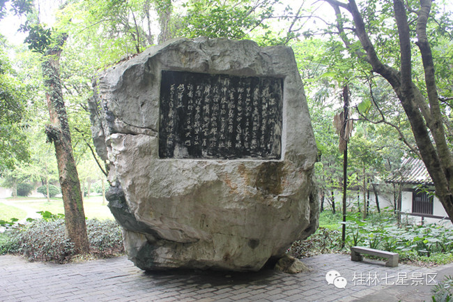 在普陀山下,栖霞寺旁,有一石,上大下小,顶部平坦,呈倒圆锥形,相传此石从天上飞来,故称“飞来石”。飞来石造型奇特,明末清初,修缮完毕栖霞寺后,大师混融和尚非常喜欢盘坐于石上诵经,故此处亦名“诵经石”。想必日日伴大师诵经之石,也是有佛性的吧,来七星可不能错过这块石头,摸摸沾上点大师留下的佛气。石上还刻着现代文学大家郭沫若先生的《满江红——七星岩》,就让我们静心细细品味一下吧: