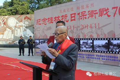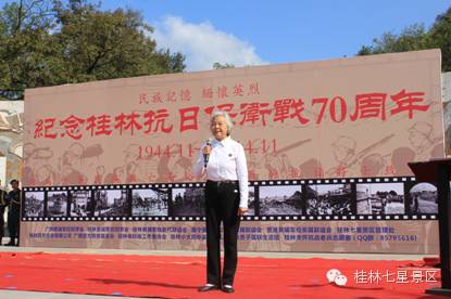 黄熙主任表示:今天就是桂林保卫战最激烈的七星岩战斗爆发七十周年。1944年11月,中国抗日战争史上著名的“桂林保卫战”拉开序幕。当时战略计划是将日军诱入桂林一带围歼,被设计成整个抗日战争的转折点,虽然最后由于种种原因没有达到预想目的,但是对中国抗战产生了深远影响,却长期由于种种原因被世人所遗忘,选择七星景区举办这次活动的目的,就是让世人知道,曾经在这里爆发过这么一场十分惨烈的保卫战,让世人都铭记历史。